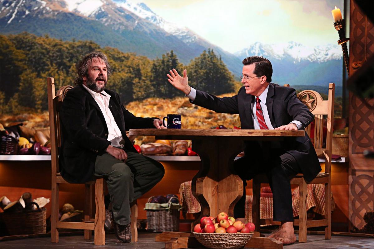 While the rest of America was either shopping or sleeping in, Stephen Colbert spent his Black Friday morning in his New Jersey home on the phone with one of his cinema idols, Peter Jackson. “I’m in my pajamas,” Colbert proudly stated to the Hobbit director, who was calling from London. “I’m in my post-Thanksgiving torpor, coming down from a stuffing hangover.” But Colbert put on his pointy interviewer’s hat, engaging Jackson in an enchantingly smart 45-minute conversation about movies, magic, and the meaning of Middle-earth. The Lord of the Rings Oscar winner was impressed, but stopped just short of saying yes when Colbert suggested—nay, commanded—what Jackson’s next job should be.