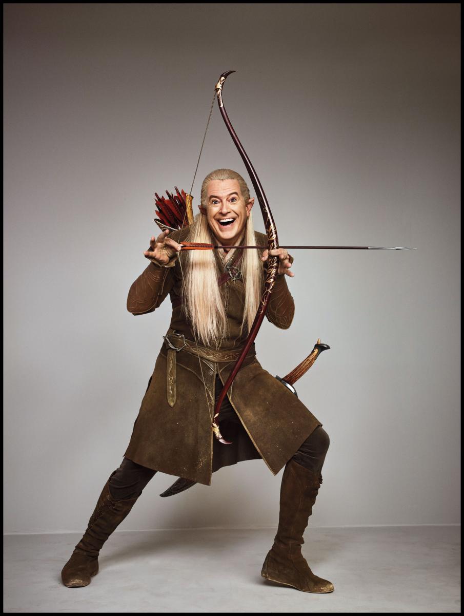 Colbert, as Legolas, gets gleeful about archery.